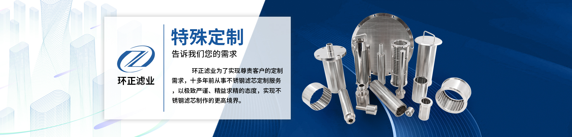 河北環(huán)正過(guò)濾器械有限公司專業(yè)生產(chǎn)不銹鋼繞絲濾芯、不銹鋼燒結(jié)網(wǎng)濾芯、不銹鋼折疊濾芯、不銹鋼濾筒濾籃、不銹鋼過(guò)濾器、濾片、等產(chǎn)品,環(huán)正過(guò)濾器材有限公司位于世界絲網(wǎng)之鄉(xiāng)——安平縣,是本地較早從事過(guò)濾器材生產(chǎn)的專業(yè)產(chǎn)家,有近16年的歷史。 我公司設(shè)備先進(jìn),管理規(guī)范,主要產(chǎn)品有: 不銹鋼過(guò)濾筒、不銹鋼濾芯、燒結(jié)網(wǎng)濾芯、各種不銹鋼過(guò)濾器、過(guò)濾袋、過(guò)濾片、錐形濾筒、